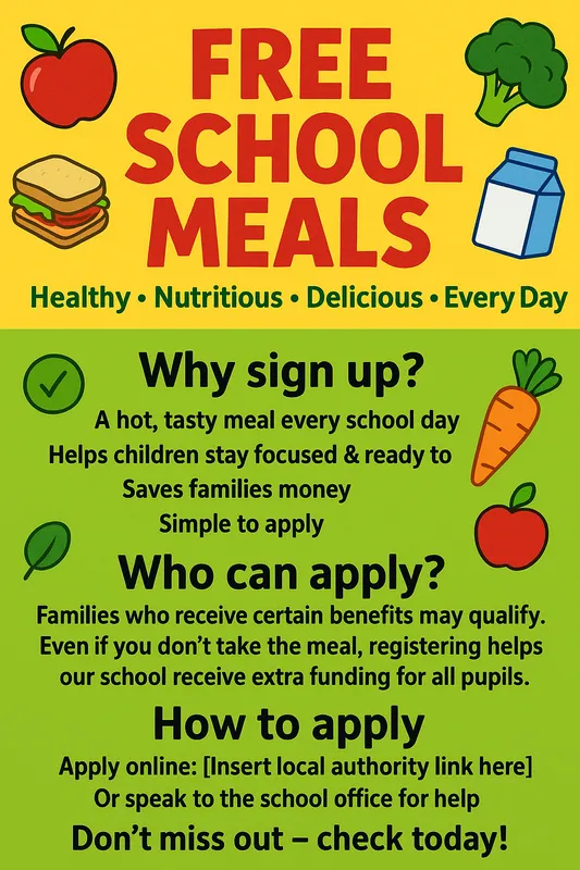 Did you know that if you're on certain benefits, including Universal Credit, your child may be eligible to receive free school meals during term time – as well as free support during the school holidays. BENEFIT BASED FREE SCHOOL MEALS SHOULD NOT BE CONFUSED WITH UNIVERSAL FREE SCHOOL MEALS. Children in Reception, Years 1 & 2 are entiled to a free meal everyday but nothing more. If you apply for and are entitled to Benefit Based Free School Meals your child not only receives a free meal everyday, but also receives FREE breakfast club sessions, FREE school trips, FREE milk, REDUCTION in the price of residentials and a REDUCTION in the price of Wrap Around Care. I have included 2 links below for you to find more information. https://www.moneysavingexpert.com/family/free-school-meals/ https://www.doncaster.gov.uk/doitonline/free-school-meals If you need anymore help, please pop into the office and speak to Mrs Wollerton. |